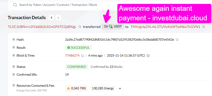 Instantly $56 usdt gotten wow awesome Hash - 2a34c27ed87790f42dfd016116c7f807a529158292e8cc5c0bda8d0707e4542e Proof - https://tronscan.org/#/transaction/2a34c27ed87790f42dfd016116c7f807a529158292e8cc5c0bda8d0707e4542e